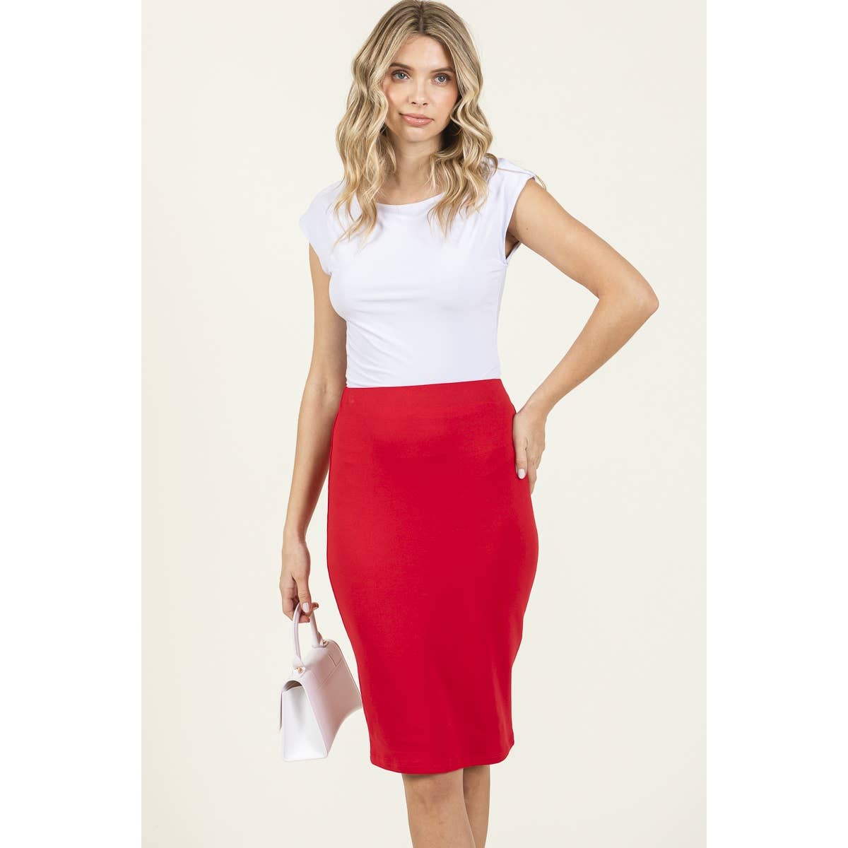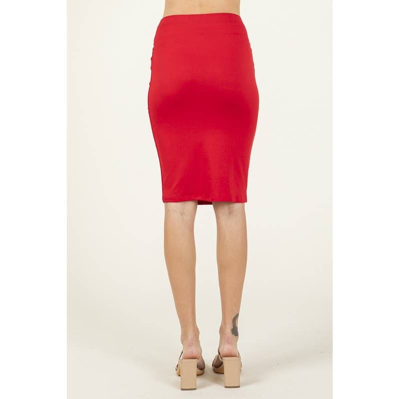 This solid knee-length pencil skirt is a versatile wardrobe essential designed for a sleek, flattering fit. Made from a soft brushed knit with added stretch, it offers comfort while maintaining a polished silhouette. Perfect for work, casual wear, or dressing up with heels and a blouse. Features: • Knee-length design • Classic pencil fit • Soft brushed knit fabric • Stretch for comfort and ease of movement • Smooth, flattering silhouette Material: Ninety percent polyester, ten percent spandex Fabric: DTY brushed knit Season: Year-round Size Range: Small, Medium, Large